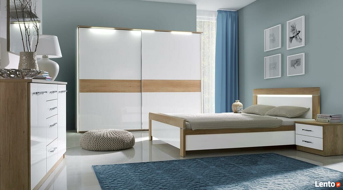 Połyskowe, białe fronty i korpusy wykonane z płyty laminowanej, imitującej naturalne jasne drewno dębowe, to minimalistyczny klimat sypialni MANHATTAN.Czystość i prostotę formy podkreśla subtelne i nastrojowe podświetlenie oraz chromowany uchwyt o wyjątkowej elegancji. Tu każdej nocy senne marzenie zacznie szeptać nam do ucha, że to jest właśnie to.