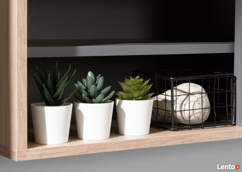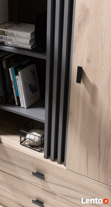 Nowość na rynku meblarskim, kolekcja ALLMO w klimacie LOFT do salonu lub biurka.Połączenie kolorystyczne dębu estany z antracytem to niepowtarzalne zestawienie, które sprawdza się zarówno w jasnych jak i ciemnych pomieszczeniach.